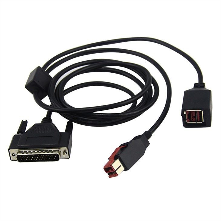This custom cable can be used to connect a device with PoweredUSB 24V port male and female power port to a PC or host with HDB DB 44 pins.