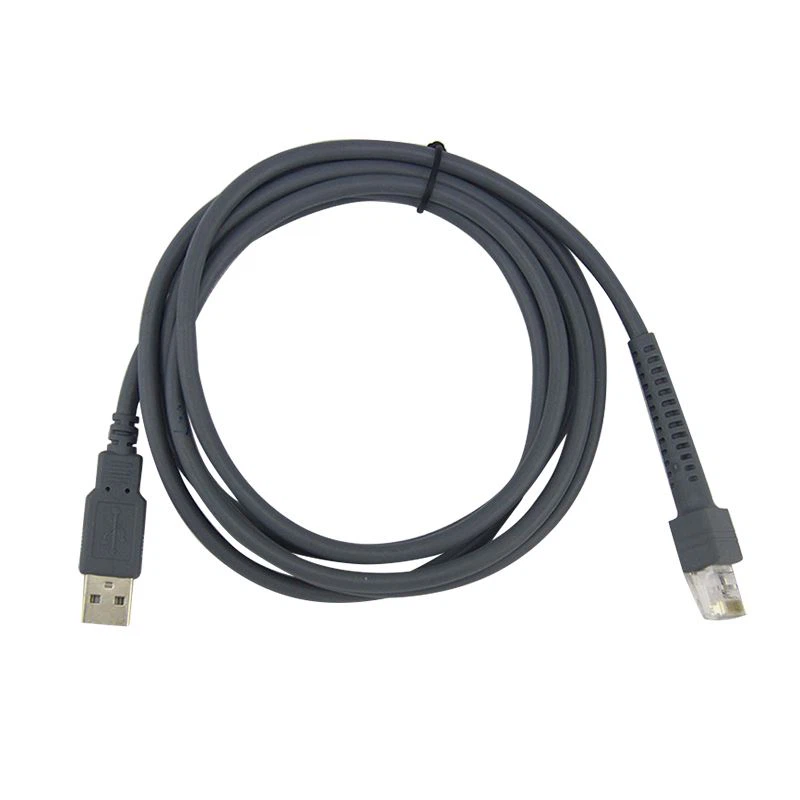This grey USB R50 barcode scanner USB cable is used to connect scanner. It is USB A 2.0 male to RJ50 10P10C male connector. It is suitable Symbol, Motorola, TVS and Honeywell brand scanners.